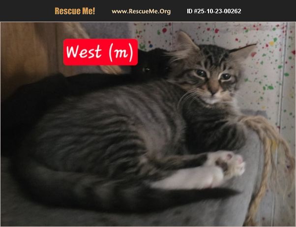 West was born outside and was rescued with his siblings at about 5 weeks old. He was the first of his litter to decide people are ok. He's still timid at first, but then he will curl up in your arms and go to sleep.