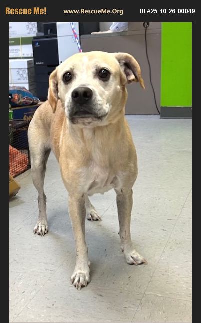 Stella is a gentle girl who likes to please. She is leash trained and knows sit, shake, and down. She came in with another dog. The contact info from the microchip is no longer working number. If not reurned home prior she will be available for adoption on 11-1-25. She is estimated to be 8 years old and weighs 51 pounds.