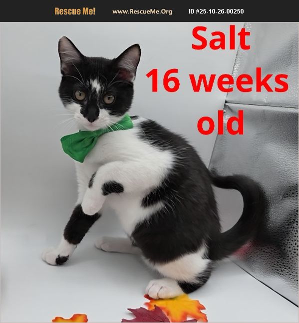 Meet Salt! Salt is the perfect mix of charm and confidence! This 16-week-old tuxedo boy is playful, social, and full of kitten energy. He loves to romp around with his brother Pepper, chase toys across the room, and climb up high just to see what everyone's doing. Salt's bold personality is balanced by his sweet, affectionate nature - he's as cuddly as he is adventurous. He's wonderful with dogs, cats, and kids, and is fully litter box trained. Salt has been neutered, vaccinated, dewormed, tested FIV/FeLV negative, and microchipped. His adoption fee is $125.
