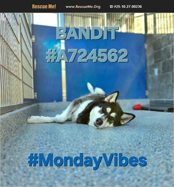 #MondayVibes with Bandit Bandit is a very friendly, gentle, & easy-going 4 year old Siberian Husky German Shepherd mix that arrived to the shelter on 7/12/24. Bandit enjoyed several months in a foster home but has since come back to the shelter from his #FosterVacation. Bandit is playful & polite with other dogs, walks very well on leash, and always enjoys spending time with people. Bandit would make a great addition to any pack or solo buddy, once someone meets him & adopts him they will be making out like a Bandit #NoJoke ! HI! My Name Is Bandit Pet ID: #A724562 Intake Date: 07/12/2024 Gender: Male Age: 4 Years Old Breed: Siberian Husky German Shepherd Mix Found At: 2000 Santa Fe Ave, Long Beach, CA 90810 If you or someone you know can help please contact the shelter at 562.570.3080 or [email protected] Location: Long Beach Animal Care Services Address: 7700 East Spring St. Long Beach, CA 90815 Email: [email protected] Phone: (562) 570-3080 Shelter Hours of Operation: NO APPOINTMENTS ARE REQUIRED! Wednesday, Thursday, Friday: 10:00 AM - 5:30 PM Saturday & Sunday: 10:00 AM - 4:00 PM Rescue Services Available Tuesday to Sunday 9:00 AM - 5:30 PM #lonelyheartsclublongbeach #adoptme #wegotdogs #adoptlongbeach #adoptLB #adoptLBACS #Paws4LongBeach #pickclickwin #iheartdogs #RescueMe