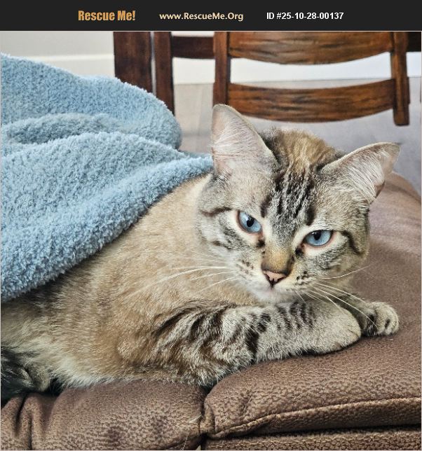 Shy and loving. Chai is a Lynx Point - Tabby/Siamese mix - approx. 7 years old. She likes to play with toys, scratch on the cat tree and snuggle under a blanket. Chai is a gentle soul with a heart-melting purr, who loves finding a sunny window to call her own. Loud noises and commotion scare her. She has not been around young kids or dogs. She is sweet and cuddly, hilarious to watch play, often bounces around and jumps in the air like a bucking horse. She sometimes growls like a dog when she feels scared or threatened. Once you earn her trust, she will follow you around the house and be your constant, loyal companion. She likes to sit at an open window smelling and feeling the cool breeze. Someone that works from home to give her love/pets would be a great fit for Chai. She will thrive in either an adult only or with older kids that are a calm household. She is an indoor only cat. Terminal medical diagnosis requires me to rehome her. Think you could be Chai's new best friend? We'd love to hear from you. Please contact us to learn more!
