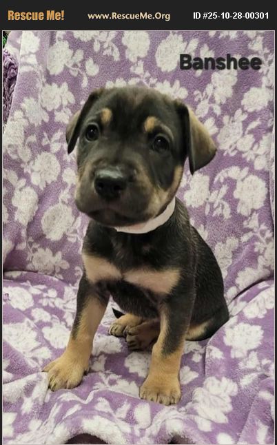 Banshee was born 08/20/2025. He is working on house training and crate training and is good with dogs, children and cats. You can apply on our website: https://www.theroadhomeanimalproject.org/companion-adoption-form-pdf.html The adoption fee is $600, which includes deworming, spay/neuter at our vet's office (when of age), vaccines (which include DHLPPC, Lyme, Bordetella & Rabies) and microchip with lifetime registration. If you are out of area and the pup is too young to be spayed at time of adoption, adoption fee will be less and you will be contracted to complete vetting with proof being provided to the rescue. **100% of adoption fees go back to the animals and help provide medical care for our rescues that need specialized medical care and surgeries. Please remember that we are 100 % entirely volunteers that have full time jobs as well as our rescue passion.