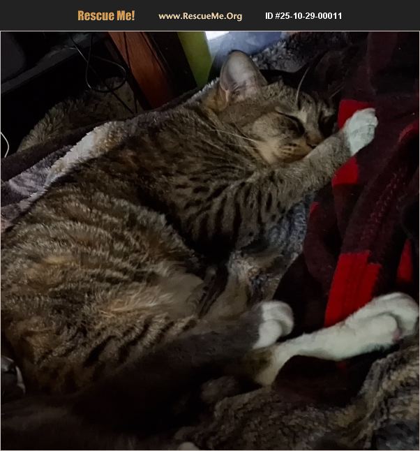 Tybalt is a very loving, somewhat vocal boy. He wants cuddles and pets often.He does suffer from incontinence due to mega colon, and as such has to has a diet of wet food and occasionally Miralax to avoid constipation. I am moving and he cannot come with me.