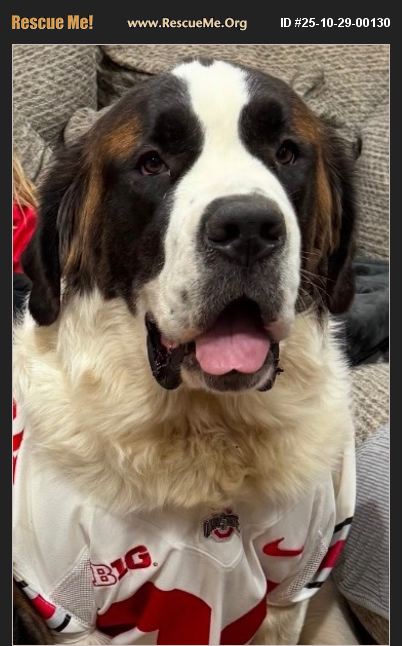Meet Nana! A meaty two year old extremely sweet and attention seeking big baby. Nana has lived with both small dogs and large and does well playing with dogs of all sizes but limited experience with cats. Also has been great around our small children. Nana is extremely athletic for a Saint Bernard and will require a fenced in back yard whether electric or privacy fencing. Nana was taken in as our family dog; however, my wife and I are expecting a baby this winter and feel it's best for safety purposes to find our girl a new, loving home. Saints are very loving but their size and lack of body awareness can be an issue as they don't realize their body in space or how big they are. Nana loves to eat and will need lots of water daily for hydration purposes. We have an appt set for her spay on November 11th, but Nana will be ready for her new home post recovery.