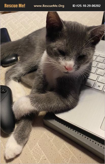 Gray cat, fairly energetic in new situations but will calm down once he gets used to it, like most cats. Finds himself in weird situations, likes to climb, loves to play, loves to lay down and be pet