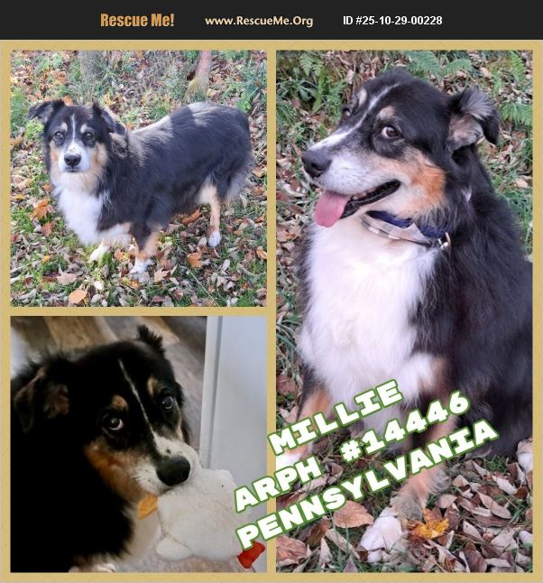 Meet Millie, ARPH #14446! Millie was very much loved but sadly came to us due to her owner's terminal illness. She is a seven year old spayed black tri(turning eight in January), up to date on vaccinations and preventatives. She loves all humans, greeting everyone with a wiggle, just looking for attention and petting. She is a velcro Aussie, wanting to be with her person(or at least in sight), and will be underfoot wherever that person might be. Millie is VERY food motivated as evidenced by her weigh in of 92 pounds at her vet visit! Less intake and more exercise will continue her weight loss program from a max of 106 at the end of April in her former home, although she'll be on the larger side even at a good weight. Inside that bulky body, though, is a dog that wants very much to be frisky and active. She LOVES going for walks and does nicely on leash. A fenced yard is preferred, but homes without them will be considered on an individual basis. She's not a fan of the crate and doesn't really need one, but she will go in for treats. Millie has excellent house manners and will let you know if she needs to go out. She has opinions and will sometimes vocalize them, especially if she wants treats. Given her size, it's not easy, but she will sit and down for the right treats. She does alert bark when someone comes or she hears a car go by; no one will sneak up on you with her around! Millie is fine with cats and lives with two in her foster home. She lived with other dogs in her previous home and with one now, but she can be bossy and prefers not to share toys, although she's not obsessed with them. She won't be placed with another female, but she could be okay with the right male. Millie's dream home would be with someone who is home most of the time, enjoys long walks, will give her a couch or chair where she can be comfy, and who will love her for the rest of her life. She will be a lovely companion and will be totally devoted to her person or persons. Millie is fostered near Honesdale, PA. If you are already approved, contact Kay at [email protected]. If you are not already approved, please fill out an application for adoption from our website at www.aussierescue.org All interested parties MUST submit an application.