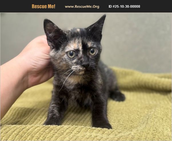 I am described as a female, tortie Domestic Shorthair mix. The shelter thinks I am about 10 weeks old. I weigh approximately 2.20 lbs. I have been at the shelter since Oct 22, 2025 and I am available for adoption now!