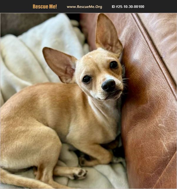 'Meet Dumpling - the 8-pound short king. If you're looking for a dog who's equal parts snuggle bug, cartoon character, and pocket-sized chaos gremlin, meet Dumpling. Lil Dumps lives for warmth - probably because he has negative body fat. His ideal day includes curling up directly on your chest, burrowing under blankets until he becomes one with your body heat, or (if you're wearing a baggy shirt) crawling right inside to live his best marsupial life. Dumperoo has the confidence of a Great Dane trapped in an action figure's body. He struts right up to big dogs like he's their supervisor but still gets shy around new humans. He's potty trained, loves toys, walks great on leash, and is working on accepting that his kennel is not a federal holding cell. Dumpelstiltskin does occasionally chew on things like shoes and noses (he is, after all, still a puppy), but don't worry - his negative G-force bite leaves no trace. Couldn't even chew through his paper pup cup. With the ears of Batman and the underbite of Beavis, Dumpling looks suspiciously like Ren from Ren & Stimpy - and his personality matches. One moment, he's a professional cuddle consultant; the next, he's a launched pinball ricocheting through the house. By the time you wonder where he went, he's already boomeranged back to your heels. Highly recommend a bell.' Dumpling is being fostered in Longmont, Colorado. *We require all adopters to come to Colorado to adopt. *We do not transport dogs.* You can view this wonderful dog at https://www.milehighcanine.org/post/dogs/dumpling/. You can apply for our wonderful dogs at https://www.milehighcanine.org/adopt/adoption-application/.