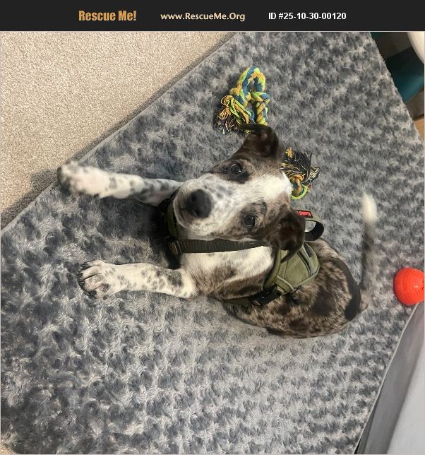 Was rescued. Sweet disposition - still a puppy and needs basic training but seems to be learning quickly