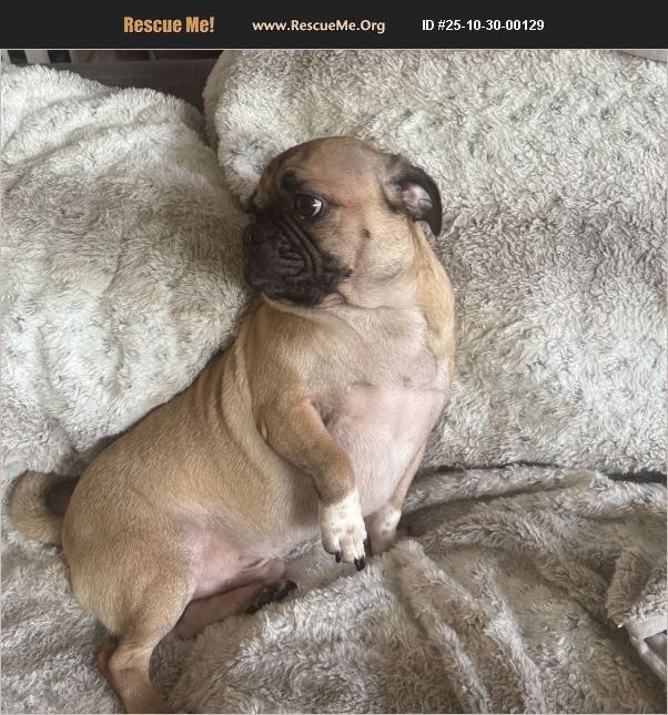 75% Pug 25% Chihuahua. Great dog. Very loving! Due to new HOA requirements, we must find him a good home.