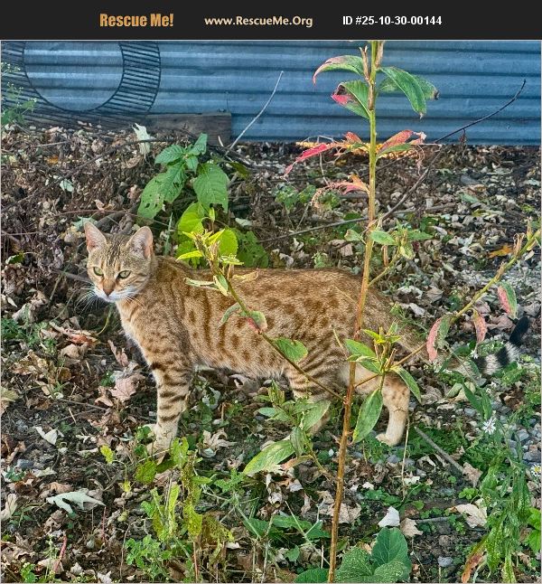 Wonderful and stunning cat. She was abandoned for unknown reasons. She is remarkably friendly to everyone including children. I would keep her but for my age. She deserves to have a home with her own humans. She will be most happy as an indoor cat that is occasionally allowed out during the day. if you live in a semi-rural area she likes to go for walks just like a dog. Because her condition was unknown when I found her I took her to a vet for examination. It was determined that she had not been spayed. Her vaccine status was unknown. I had her vaccinated for rabies, distemper, feline aids and leukemia, dewormed, treated for fleas and chipped. These are all expenses that a responsible new owner would have had do immediately. I am a senior on a fixed income so this nearly $400 expense was a great burden. I would respectfully request that any interested adoptor reimburse me. I will provide receipts and all associated medical records. On a final note I have submitted DNA for testing as there is some debate whether she is an Ocicat or part Bengal. Both a Bengal and Ocicat breeder have been unequivocal in designating her as Bengal although not pure bred. The DNA test should clear that up.