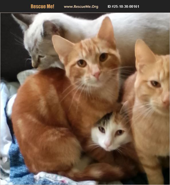 Born June 3rd. Litter trained. Raised around a dog, chickens, and a 3 year old. He is the darkest orange guy with the whiteish chin. He's super cuddly and loves attention. If he's not with his siblings he is in your lap! If we don't find a home soon they will have to go to the pound. Tell your friends! Help find these cuties homes! Thank you.