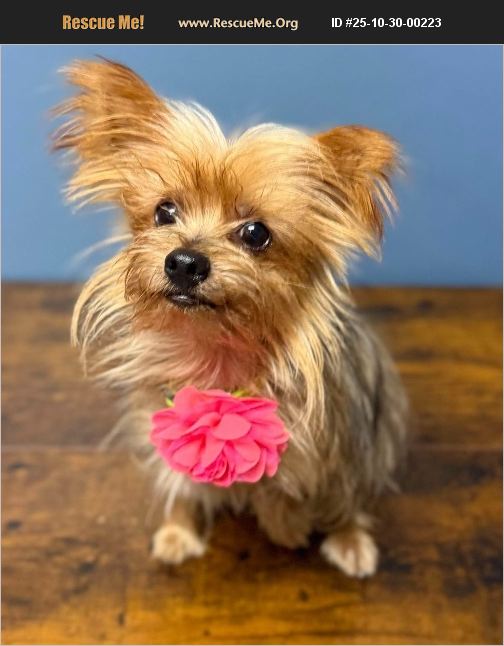 Spayed - Yorkie - 2 yr - 5 lbs Tinkerbelle is 5 lbs of pure spunk, energy, and sass (in the best Yorkie way �%9D%A4��%8F) She walks up to her kennel jumping and wagging her tail and absolutely loves back scratches and being carried. She turns into a ball of energy with other dogs and would probably do best as an only dog or with a submissive dog. She definitely thinks she is a big dig in a yorkie body. She definitely is nervous around men, and would take time to Acclimate into a home with males. If you are interested in giving Tinkerbelle a second chance please fill out our application at this link. https://form.123formbuilder.com/5119381/adoption-application