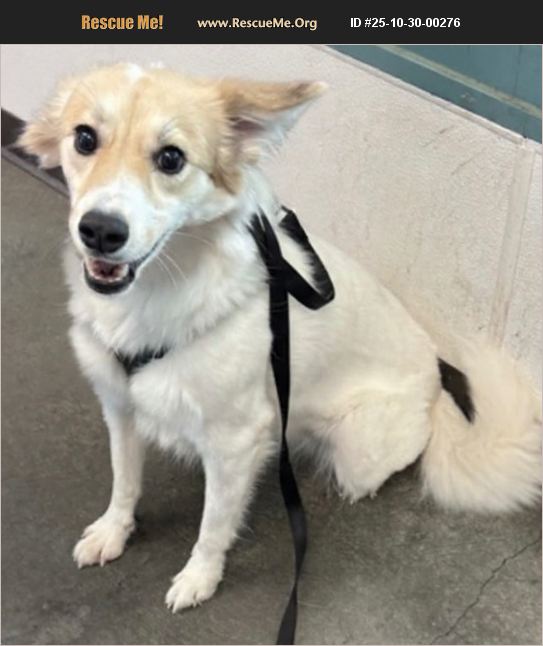 Bambi, A2240700, is Urgent Listed to high levels of FAS (fear anxiety stress) in the shelter environment. Please save her before it's too late! 3 years, white & tan, female, 35 lbs, Shetland Sheepdog. Arrived: 10/25/25, as a stray. Urgent due to: High FAS and gets stressed when handled. Bambi is overwhelmed and shut down in the kennels. She needs an understanding person or rescue who can give her the space and time she needs to regain trust. Transportation information is available contact Bonnie below.