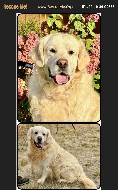 My name is Joey. I am an 8-year-old (recently) cream Golden Retriever. I do great in a crate. So far there have been no accidents (with supervision or containment) in the house. I have a high-pitched singing voice in the kennel or by myself in the house because I want attention, but when I'm with people I am quiet. I will need a steady, firm and consistent hand to get past some anxious tendencies�'�|but it all comes from a place of love! In my last home, I was kept outside in a small dirt run and didn't get out much. Now I'm learning about outdoor exercise, leash manners, and how to not be pushy with people and other dogs. I LOVE all shapes and sizes of people and animals�'�|but my exuberance gets the better of everyone at times. I will want continued help regulating my behavior. The house cat in my foster home is interesting, and I will need continuing guidance on showing respect and appropriate etiquette with other pets. I do tend to guard my food and should be fed separately from any other pets. We all should get to eat our food undisturbed, I think! I am currently in foster care at a farm in NE Oregon (outside of LaGrande). So far I don't care at all about the animals (horses, pigs, chickens) but will occasionally bark at cows off in the distance. I have minimal interest in toys but do love a good treat and can take them very gently. I know my name and have some recall. I know 'sit', but don't have much exposure to other commands. Chews are pretty exciting and I will happily work on them to clean my teeth. I haven't shown any tendencies to dig or question the 3-foot fence in the pasture. When it comes to food, I'm a slow grazer and am easily distracted by any other activity. The neighbor kids have come to visit, and I really enjoyed the attention, but they had to stay careful and safe around my boisterous ways. My favorite things are rolling around in the grass while growling and barking for no apparent reason, and jumping into most any kind water�'�|except I'm not too excited about baths, and like to show off my muscle in protest. Everyone found out I like to destroy stuffies too! I'm getting more fit every day! I was nearly 100 pounds when I went into foster care. In two weeks, I've shed over 10 pounds and am aiming for a fit 75 pounds through proper exercise and diet. Looking forward to meeting my perfect family! ****** ADOPTION FEE $500 PLUS $35 MICROCHIP FEE ****** Joey is being fostered in the LaGrande area. PACIFIC NORTHWEST and NORTHERN CALIFORNIA APPLICANTS ONLY: Oregon, Washington, Southern British Columbia, Western Idaho and Northern California. Please do not inquire if outside these areas. Golden Bond DOES NOT adopt to families with Children under 10. Home ownership and secure 5-foot fencing is required.