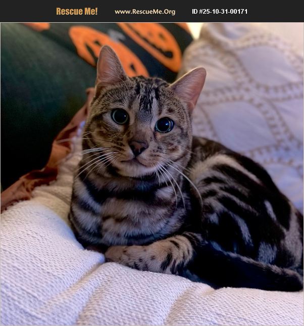 Hello! Spooky is a 2yo male bengal. He is the sweetest boy and loves people and other animals. We are looking to rehome him to due to his need to be outdoors. Unfortunately, his previous owners let him roam outside, but we are getting daily coyote sightings in our neighborhood and cannot let him out. He requires a lot of stimulation and a lot of love. We would love to send him to a loving family that can offer him safe outdoor time.