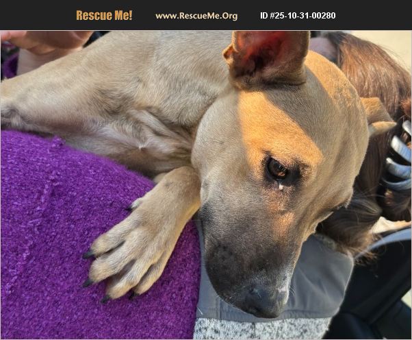 Super sweet, but shy female puppy. She was found in the road today, and rescued from getting hit. I believe she is a pit cur mix . Not incredibly sure about that. I'm not sure how she is around kids. I believe she is around 7-8 months old.