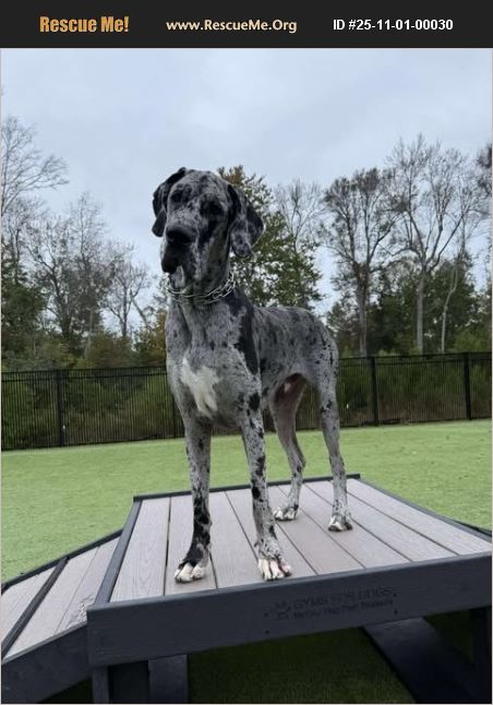 LOCATION: Oak Island, NC DOB: 10/01/2022 Meet Bruno, a stunning merle Great Dane with the heart of a gentle giant and the soul of a loyal partner. If you know and love the breed, you'll instantly recognize that signature Dane blend of goofy charm, emotional sensitivity, and deep devotion - Bruno is all that and more. Bruno's story has been shared through his foster dad's TikTok and Facebook (look for Dan Roehrs if you'd like to follow his journey), and it's clear this boy has come a long way. He's a sensitive soul who's been through some tough moments, but with patience and structure, he's blossomed into a funny, affectionate companion who wants nothing more than to be by your side. He's got that classic Great Dane work ethic - he loves to do things with you. Whether it's a walk, a little training session, or just hanging out while you get things done, Bruno thrives when he's part of the team. The more he gets to 'work,' the easier he is to manage, and the happier he becomes. Give him a daily routine and a few walks (or a dog park visit to see his buddies), and he'll reward you with a calm, loyal presence at home. When he's off-duty, Bruno's favorite activities include snuggling up in blankets, 'borrowing' laundry from the hamper, and showing off his adorable bouncy dance when he's happy. Once you've earned his trust, you'll see that big puppy energy shine through - and he'll keep you laughing every day. Bruno has one lingering fear - parking lots. He rides nicely in the car as long as the windows aren't wide open, but pulling into a lot can still be scary for him. He's made huge progress through gentle, consistent work, and with patience and empathy, he'll continue to improve. He's been fantastic with other dogs, large and small, and he's a regular at the dog park, where everyone compliments his good manners. He's also done well around cats and has been calm and tolerant with young kids who approached him unexpectedly. Around adults, he's a total flirt - especially with anyone willing to give him a good scratch session. Bruno would do best in a home with someone who understands the gentle, giant-hearted nature of Danes - a person or couple who can give him time, consistency, and plenty of love. He doesn't need acres of land; a backyard and daily walks are plenty for him. What he does need is companionship and mental engagement. He'd be perfect for someone who works from home or a retiree with an active lifestyle. With continued training, Bruno has the intelligence and temperament to excel at advanced obedience - even service work isn't out of the question. But at the end of the day, he's happiest lounging at your feet, wrapped up in his favorite blanket, knowing he's finally home. If you're ready to welcome a loyal, goofy, and deeply loving companion into your life, Bruno's ready to meet you - and win your heart. ========================= To apply to adopt me, please fill out the application form! https://form.jotform.com/51994996709176 . Note: SRGDRR adopts nationwide and offers transport options to help you find your perfect match! Check out our other adoptable dogs at saverockythegreatdane.org/adopt.