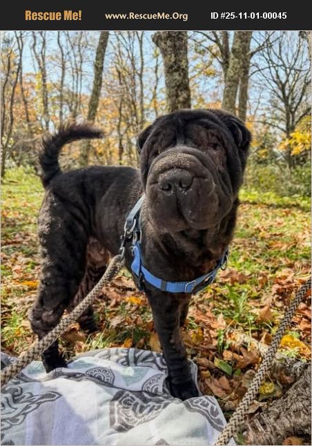 This is a 2 yo 46 lb neutered male Shar pei that my daughter first knew as a puppy at the vet she was working at. 2 years later, she found him chained on a porch and not getting care for his medical issues. So she got him released to her. She has now been having him boarded at the vet she works at, had him neutered and everything else up to date now, skin treated, no heart worm, no parasites, except eye surgery. So she resource guards with food because can't see well. She takes him out daily, but can't take him home because her elderly pit she's had for years can't be around other dogs. Since this is now an owner surrender, he needs either an adoption or foster.
