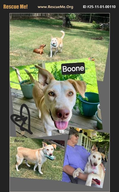 BOONE is 18 months old. He is a very handsome Yellow Lab/Husky mix who weighs 45 pounds. BOONE loves to play with other dogs of all sizes. He is also cat friendly (we have a video). He bonds very closely with his person. Boone has been on outings to the park and Petsmart and he did great. He loves playing with toys, going on walks, and going for car rides. He loves being petting. He is house trained and crate trained. Walks wonderfully on leash. He's only been around kids at park and did just fine. BOONE came to rescue from a man in a homeless camp. BOONE has not always had life as good as now with his loving foster mom. We want the best home we can possibly find for this sweetheart. He has certainly earned it. BOONE is currently located in Jackson, TN. Please contact Lisa at [email protected] or 731-499-0739 .Transport out of state can be arranged for an additional cost of $185 ... which will include is health cert for travel.