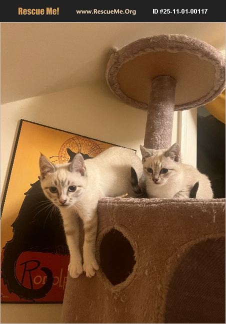 Fiona and Phoebe, two twin Siamese mixes, are looking for their forever home! Available to adopt separately or as a pair. They would be happy to stay together but will also do well on their own or meeting a new kitty roommate. Fiona is playful, loves to eat Churu out of your hand, and will roll over for purrs and belly rubs. Phoebe is a gentle girl. She would love to be a lap cat!