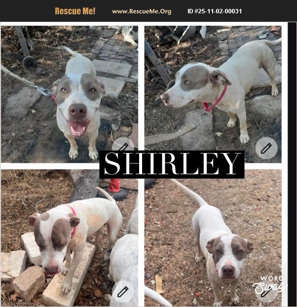 Shirley, is around 2- 3 years old, fully vetted and house trained, loves kids great w other dogs and cats. Super smart and friendly and beautiful to. She looks like a Pointer, Catahoula, and Lab blend - a beautiful mix of smart, loyal, and affectionate!