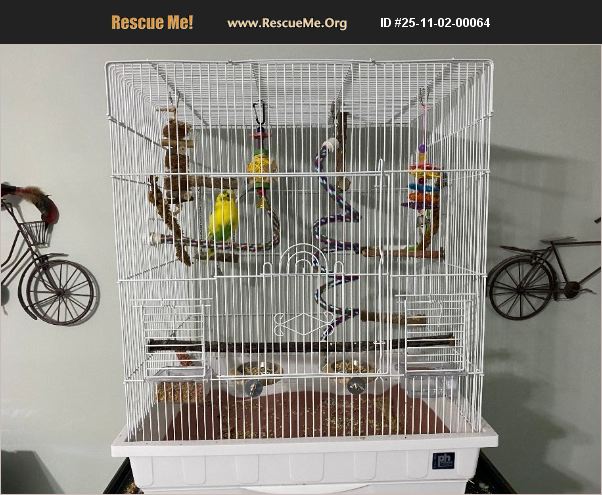 There is one white parakeet and one yellow parakeet in one cage. They get along together very well. The cage, toys and food is included.