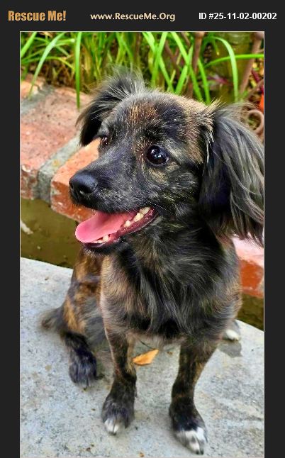 Please fill out an application to start the process to meet BRITT. Meet and greets will be held in RIVERSIDE, CA https://pawsitivetailstoremember.forms-db.com/view.php?id=17980 BRITT is 11 months old, she weighs 8 lbs and the best we can tell, she is a Papillon/Pyrenean Sheepdog with Chihuahua and Pomeranian mix with a beautiful BRINDLE long-haired coat which will require minimal grooming. Britt loves everyone, people, children, dogs and cats and she's just perfect. Britt is full of playful energy and will fit into any type of a home. Britt is house and crate trained and she comes when called, so absolutely no name changes! Britt is playful and inquisitive, loves to be held and she is cat and dog friendly with the other animals in the home and she loves treats! Please note that while she is crate trained, we don't want her living ��Z�in a crate in her forever home! We do require at least one other small dog in the home as a companion for Britt! No exceptions. Britt is microchipped, current on vaccines, spayed and she would love nothing more than a forever family to call her own.