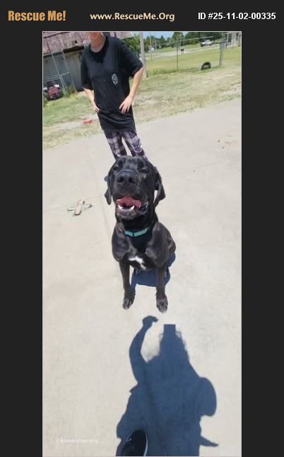 Aries is a sleek, jet-black stunner with the graceful frame and goofy heart of a classic Great Dane. Tall, athletic, and full of presence, he's the kind of dog who turns heads on a walk-and then immediately makes you laugh with his antics. He's great with other dogs, cat-neutral, and adores people. That said, Aries is still very much a giant puppy with linebacker energy-so any kids in his future home should be sturdy and dog-savvy. He hasn't quite grasped the concept of personal space, and when excited, he's been known to leap like he's chasing a touchdown. Aries is kennel & crate trained (he fits a 54' crate) and knows a few basics, but he'll need continued work on polite greetings and general manners. Like many Danes, he thrives with consistency, structure, and people who understand that 'giant breed puppy' is both a lifestyle and a mindset. He came into rescue in April and has blossomed into a confident, loving, and hilarious companion. His Dane traits shine through in the best ways-loyal, sensitive, a little clumsy, and constantly tuned in to his people. Aries is ready for a home that will guide him through the rest of his growing up with patience, playtime, and lots of love. He may be big, but his heart is even bigger.