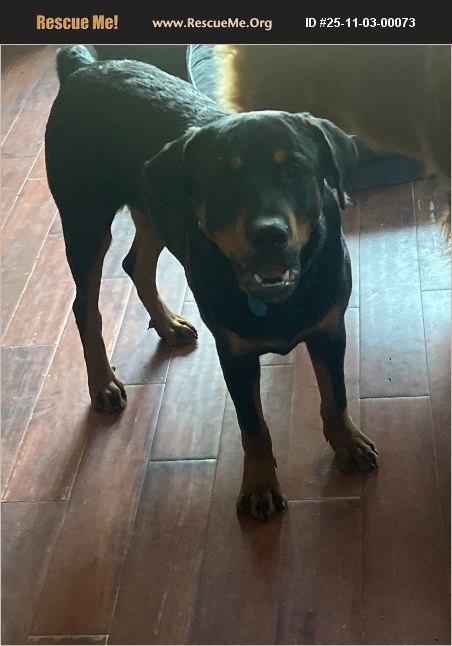 I rescued this 6-9 month old Rottweiler behind a gas station. We have managed get him potty trained, first shots, some socializing. He gets along with cats and calm dogs. I need to find him a forever family my husband and I are both older and this puppy is expected to be 100-130lbs much more than we can handle.