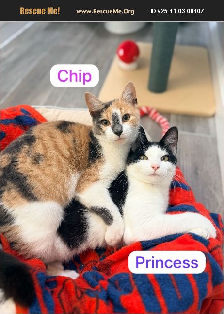 Princess & Chip Foster home in Monmouth County, NJ Available mid-November 2025 These sister-cousins are the perfect pair - full of sweetness, playfulness, and love! Princess lives up to her name - she's outgoing, affectionate, and adores attention. She loves being picked up and carried around like royalty and is wonderful with children. Chip is a little more reserved at first, but once she warms up, she's a total sweetheart who loves gentle affection and quiet companionship. She also enjoys children's company. Together, they make a beautiful, balanced duo - one bold and social, the other soft and loving. Any family would be lucky to have these two charming girls join their home!