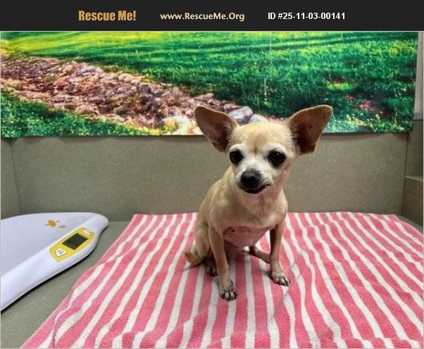 BELLE - ID#A477149 Shelter staff named me BELLE and I am a spayed female, tan Chihuahua - Smooth Coated. The shelter thinks I am about 13 years old. I weigh approximately 6.30 lbs. I have been at the shelter since Oct 29, 2025 and I may be available for adoption on Nov 05, 2025 at 2:56PM.