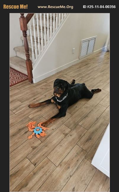 Hi, meet xander! He is settling well with his foster parents waiting for his perfect home. He's extremely active. He loves to have affection, attention and any type of play time. He is not treat driven at all. Amanda and her training facility did a great job preparing him for his next home. He knows sit, place, and he walks amazing on the leash. He goes for daily walks and sometimes twice a day. He has a great backyard and is ready to meet his new parents! Xander would be best as the only pet in the house. He will come with free training lessons so that you can fully understand Xander, the way that he was trained and to insure a smooth transition into your home. Xander has complex s 6 week board and train program with Paw Creek Dog Training.�%A0 Our Adoption Process... If you are interested in adopting one of our fun loving not so rotten rotties, you will be asked to fill out a questionnaire that will allows us to get to know you better and to make sure the dog you are looking at is a good fit for your family and lifestyle. You can access our questionnaire by going to our website, www.rottenrottie.com click on the forms tab, and fill out the questionnaire and submit it online. After we review your answers, if we feel that the dog that you are interested in, is not a good fit for you and your family, we may recommend a different rottweiler companion. After we determine which Rottweiler(s) is the best for you, we will set up a time so that you can meet him or her at their house, where they will feel most comfortable and act as they normally do. An adoption contract will be signed to finalize the adoption and we do ask for a rehoming fee of $500 for most adults, $400 for most of our seniors 6 years and above for any rottweiler mix of any age (except puppies) . Our fees for puppies fluctuate depending on how much we had to invest into them or their litter, and weather they are purebred or a mix. These funds are necessary so that our organization may continue to rehome rottweilers. ALL of our dogs are sterilized, fully vaccinated and microchipped, heartworm tested negative and come with a collar and a leash. We have also addressed any injury or illness that they had when they came to us, or received in foster care. These problems will be disclosed to the adopter prior to adoption.�%A0