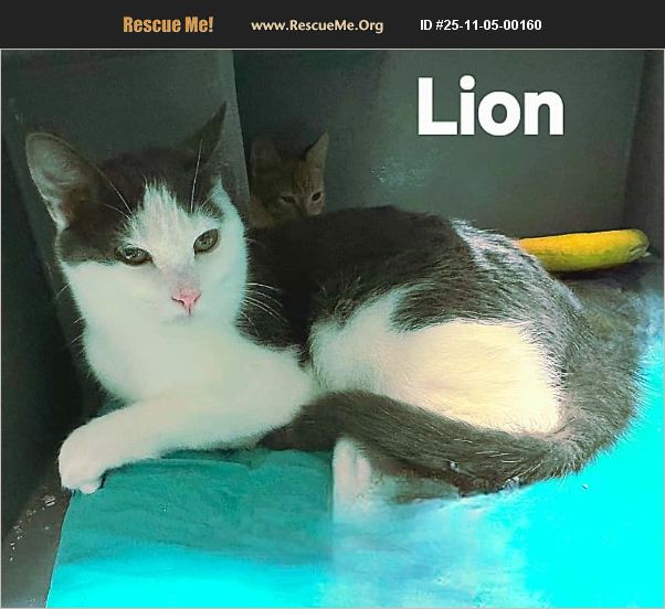 Lion is a 6 mo old grey and white kitten. His fur is very soft. His buddy, Georgie comforts him-they are snuggle buddies. Lion is is very gentle. He likes churros and he likes to play with a feather stick. If he gets to know you, i am sure he'd be your snuggle buddy too.