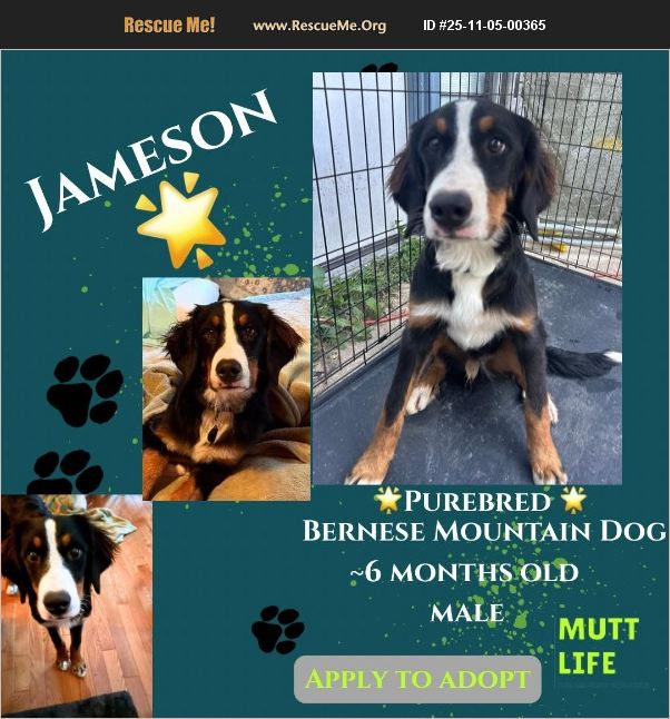 Meet Jameson: a beautiful 6 month old purebred Bernese Mountain Dog who was rescued from severe neglectful circumstances but with appropriate care has started learning to trust again. From his foster: In just one week, Jameson has already shown how much love and potential he has inside. From a terrified, shut-down pup to discovering couches, kisses, and even his first tail wag - his progress has been nothing short of inspiring. He is stunning and full of promise, but he will need patience, time and continued socialization to help him fully blossom. His journey is only just beginning, and the right adopter will give him the security and love he needs to thrive. This beautiful boy is ready to meet his forever. Are you the one who will give him the love and patience he needs? __________ Adoption fees include the cost of spay/neuter procedure, up-to-date dewormer, vaccinations, heartworm prevention (age appropriate), and certified veterinarian inspection within 30 days of adoption. __________ Review adoption requirements and ensure you meet the necessary criteria to apply! https://www.muttlife.org/adoption-policies _________ ADOPTION PROCESS: 1.) Apply: Fill out an adoption application completely and submit all necessary documents. 2.) Application Decision: approved applicants will be notified via phone call and email. 3.) Foster-to-Adopt Trial Period: After approval, you have the opportunity to do a meet and greet and bring your dog home! You get a 5-day foster-to-adopt (FTA) period to make sure it's the right fit. 4.) Final Decision: By the end of the FTA period, please let us know your final decision to adopt or return the dog to our rescue. 5.) Home Visit: After the adoption process, we conduct a home visit either in person or via Zoom meeting to ensure that everything is going well with the transition and to answer any final questions you may have. 6.) Neuter/spay for puppies: for dogs who are not fixed at the time of adoption, we will reimburse for the procedure once we receive proof of spay/neuter. The procedure MUST be done at HAWS Snip Clinic in Waukesha, WI, or Wisconsin Community Veterinarian Center in Madison, WI. If you would like to go through your veterinarian or another location, we will reimburse $150 once we receive proof of the procedure. We recommend spay/neuter around 6 months old. **Note: Adoptions are not considered final until the dog is neutered/spayed if applicable**