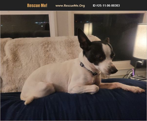 Adult pure bred Rat Terrior. Fine with other animals. Potty trained and kennel trained. Not leash trained. Good for a family or single individual with no other animals as she wants constant attention and would love being the center of it.