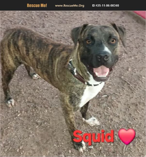 Please help me live! Mcacc Shelter has given me a deadline due to kennel stress. I have done nothing wrong so I hope you come and meet me before my deadline! LOCATED: 2500 S 27th Ave Phoenix Az Fill out: https://www.thedogsavers.org/apply-to-adopt/ Call: 480-331-4188 I'm SQUID #A5151798 a 2yr old, 61lb male, Brindle/White terrier Mix. I was found as a stray in neighborhood. I'm a bit timid, scared and cautious. I will lean in and nudge hand for pets and affection. Love walks, great leash walker and I stay close to my person. I'm curious and love exploring outside and looking to feel safe. Considered dog friendly with proper slow intros. I'm a good boy and want a chance at life and someone to love me. Please come and meet me.