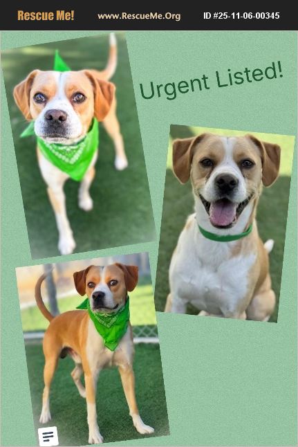 Update: he was saved by a foster! He still needs a furever home!! Urgent!!! this adorable little guy's life is threatened simply because he is so scared of being in the shelter environment!! This is so heartbreaking.!! Please someone save him!! DANNY, Video: https://fb.watch/Dd6nQ7_8aj/?mibextid=wwXIfr&fs=e A2237580 - NEUTERED MALE, BROWN BEAGLE MIX Shelter: HARBOR Age: 2 YEARS, I weigh approximately 37.20 lbs. This animal has been at the shelter since 10/10/2025 and on this list since 10/29/2025. Urgent Listing Reason: Danny is exhibiting signs of high FAS (fear, anxiety, stress) including jumping, circling, panting, and barking while in the kennel. Transportation information is available contact Bonnie below