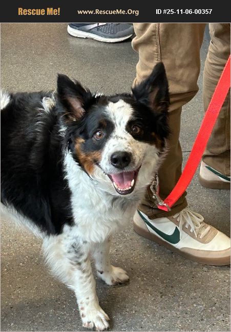 Rocky is a sweet and smart border collie mix. He is extremely loyal. He loves going for walks and car rides. Because he is so loyal, he tends to be possessive of his humans. He tends to be anxious around loud noises and is possessive of his humans, he would do best in a home that is calm, with no children. He has lots of energy and would love a job!