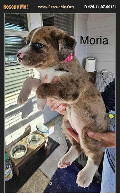 Moria is one of 6 GORGEOUS pups born to a 50 pound Catahoula mix girl with THE best disposition. Pups appear to be following in her footsteps. Chill, friendly, just the right mix of playful and snuggly. Expected to be med-med/large when grown. Coming to Massachusetts in December. Thank you for choosing rescue. PLEASE DO NOT CONTACT US BY EMAIL OR PHONE TO TELL US YOU ARE INTERESTED IN MORIA. We are all volunteers and we cannot move forward without your application. If you would like to be considered to adopt her go to our website and fill out an application. www.sunnypawsrescue.org. Be sure you receive a confirmation email after submission and someone will be in touch promptly.