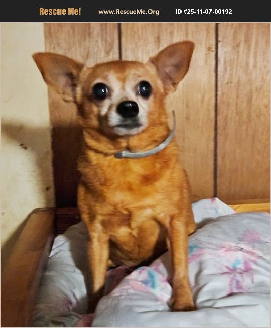 Ruby is a 9 year old female, spayed, weighing 8 lbs. She is house trained and potty pad trained. She was briefly rehomed a couple years ago to 'animal lovers' who had a teenage son who abused her; he was overheard to brag, 'I threw that little rat in the kennel and slammed the door in her face!' She returned to me traumatized, retreating to a corner of the room, trembling and fearful. Vet exam later showed that her sensitive tail was a result of a recently healed break. Ruby is not your average chihuahua, and only barks like a mad dog when she hears the big dogs outside trash talking coyotes in the distance. She is not aggressive and has never growled or snapped at a human. Ruby needs a home where she can be a beloved lap dog. She loves to sleep on a bed with her human, burrowing under the covers in the wintertime, but will sleep on a dog bed in your room if you are not a dog-in-the-bed type of human. She has been kennel trained, but may still be a little nervous about kenneling after her experience at a former home. You can meet Ruby in Lynchburg, Tennessee or I may be able to deliver within a 3 hour drive. Applicants with vet references are preferred.