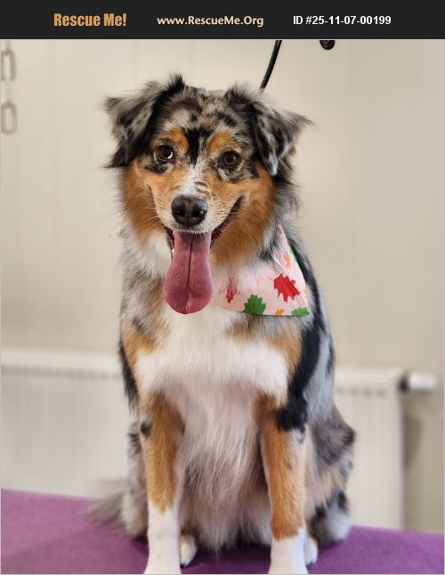 Astra is a 4 year old female purebred Blue Merle with beautiful white/brown/black coloring. She comes from a loving home and we have been her only owners since she was a few weeks oly. The only reason we are seeking re-homing for her is because our 1-year old son has developed allergies to her shedding fur and dander and having her in our home is not feasible anymore :( She loves being outdoors: going on walks around the neighborhood, hikes through the woods or playing fetch at the park. Astra is very energetic and playful, and is very sweet and loving with both adults and children once she gets to know them (which happens quickly). She gets nervous/anxious around unfamiliar people and dogs, and has nipped the ankles of a few people by whom she felt threatened or felt were threatening people she loves/protects. She would do best in a fenced in yard (or at least an electric fence) and is completely house-trained and great in the car. Astra knows and obeys many commands, like sit, stay, come, drop it, paw, jump, turn around, bark, lay down, leave it, go to your bed etc. Astra is spayed, microchipped and up-to-date on her rabies vaccination and heartworm treatment (and nearly up to date on all others -- we are happy to get her fully up to date before re-homing). She would be a great addition to an active household. If Astra sounds like a great match for you, please reach out :)