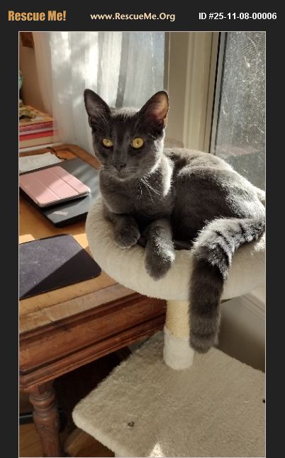 Bruce is a very active young man about a year plus. He's been neutered and has all of his current shots. Bruce is a classic Korat with many of the characteristic traits described for this breed. He is very active, very curious, and very smart. In fact that's why we call him Bruce the boss. He is still maturing and that will take sometime and patience. But he is a lovely boy and is looking to find his new forever home.