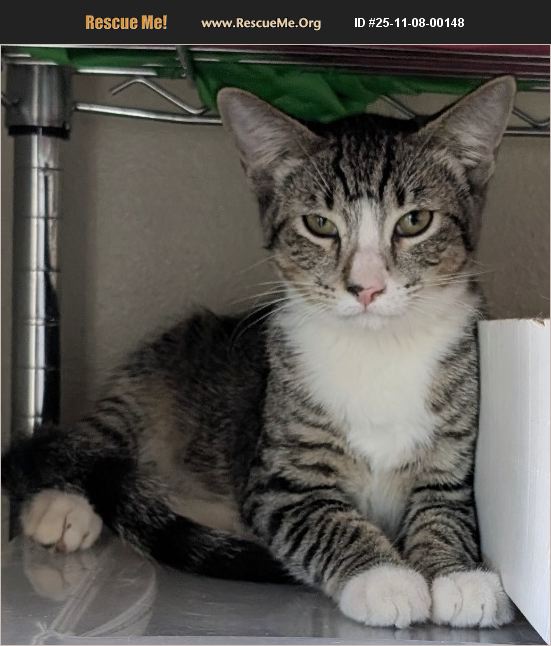Calliope is an adorable tabby with white a white racing stripe on her nose and white paws. She is bunking with her 'twin' brother Calvin. She is so sweet and adorable and just wants to be loved on. Brother Calvin is a little more shy but once you give him some love he warms up nicely. The adoption fee includes being spayed/neutered, treated for fleas and worms, current shots and being chipped.�%A0 We also pay for the initial chip registration.�%A0�%A0 Adoption events are held�%A0Sundays at the Fontana Petco 12-4pm https://petstablished.com/adoption_form/32024/generic