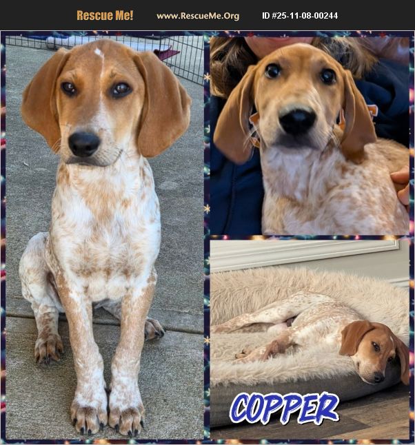 Meet Coppe! Age: est 4 months. Breed: mom is a bluetick hound, dad is unknown. Size: approx 20lbs, we believe he will be about 65-70ish lbs when full grown. Training: crate trained, working on leash and house training. He is just a pup so he will need continued guidance. He knows sit and he is very food motivated and eager to please. Good with dogs/cats? Yes to both. Good with men/women/kids? Yes. Personality: a little shy at first, but that doesn't last long! He warms up to be friendly, affectionate, and playful. He will bark or howl when he has an opinion. He would do best with another canine companion to play with or an active family. Reason for rescue: Copper was born to a stray mom. The pups had to be humanely trapped to be caught. They didn't recieve socialization before coming to us, but they have come so far! Copper's personality has really blossomed. He is neutered, microchipped, heartworm negative, and current vaccinations and preventatives. If you are interested in adding this sweet baby to your family, please message for an adoption application. Adoption fee: $75.