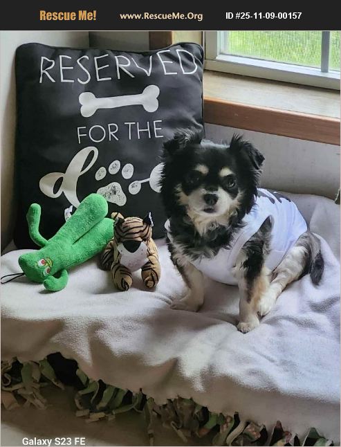 BASIC FACTS Breed: Chihuahua mix Color: Black & white Age: 8 years Gender: Female, spayed Size: Small, 10 pounds House-trained: Yes Crate trained: Unknown Good with Kids: Unknown Good with Dogs: Yes Good with Cats: Unknown Concerns: Prefers a calm house, prefers other calm dogs, needs daily medication for heart BIOGRAPHY Meet Hannah! Hannah came into rescue when she was found as a stray. She came into SGF when her previous rescue closed. She is now ready to find her fur-ever home! Hannah is an adorable little lady. She is quiet and easy-going. She does fine around other dogs but prefers quiet housemates. Young, active dogs tend to bother her. Hannah enjoys snuggles and quiet time with her people. Hannah has recently been diagnosed with early heart disease and does require daily medication. She has been feeling great since starting the medication! Hannah is spayed, vaccinated, microchipped, and heartworm negative. She is being fostered in Amherst, OH and is available for an adoption fee of $350.00. If you are interested in adopting, please submit an application online at www.sophiasgracefoundation.org ***Petfinder/RescueMe inquiries are NOT considered applications and may not be responded to***