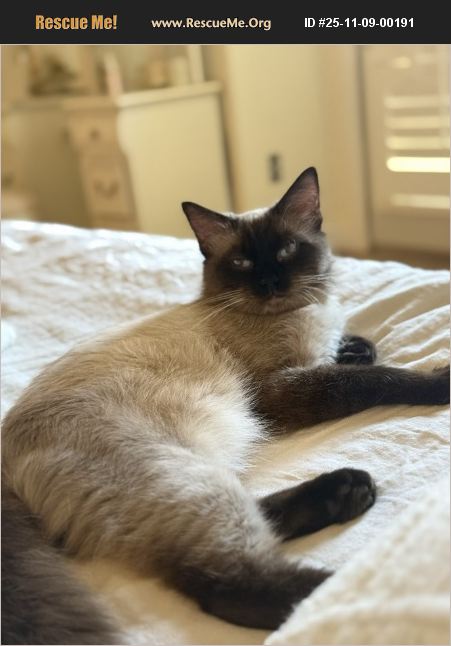 Meet Ivy - The Shadow with Sapphire Eyes Ivy is a stunning 5-year-old Siamese gentleman with striking blue eyes and a heart full of love. Life wasn't kind to him in the beginning - he was rescued from a severe hoarding situation where regular meals and affection were in short supply. Despite his rough start, Ivy has blossomed in foster care into a devoted and affectionate companion. True to his Siamese nature, Ivy loves to be involved in everything his human is doing. Whether you're folding laundry, typing at your desk, or just walking from room to room, expect Ivy right by your side - or, more accurately, under your feet! He's a loyal little shadow who wants to be part of your every move, so he'll do best in a home where the occasional 'cat trip hazard' won't pose a safety concern. Because of his past, Ivy is quite food-motivated and never misses a chance to investigate people food. His forever family will need to keep a close eye on him in the kitchen and at mealtimes to help him continue learning that his bowl will always be filled with love (and kibble!). Ivy has two speeds: full throttle playtime and deep, peaceful naps. He's athletic, curious, and loves to zoom around before curling up for a well-earned rest. He can be shy with new people or in unfamiliar environments, sometimes choosing to hide until he feels safe - but once he trusts you, you'll have a loyal companion who follows you everywhere. Ivy will do best as the solitary pet in a household. If you're looking for a beautiful, high-energy cat who will make sure you're never lonely, Ivy may just be your perfect match. He's ready to trade his difficult past for a bright, loving forever home.