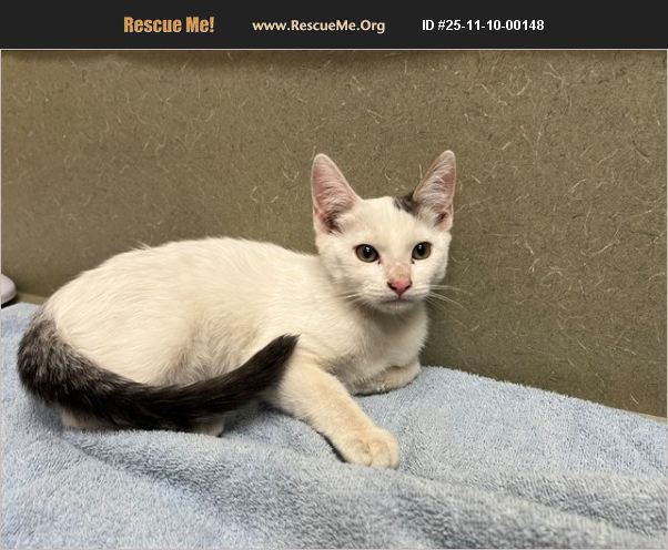 I am described as a male, white and brown Domestic Mediumhair mix. The shelter thinks I am about 4 months old I weigh approximately 4.28 lbs. I have been at the shelter since Nov 04, 2025 and I may be available for adoption on Nov 12, 2025 at 10:06AM.