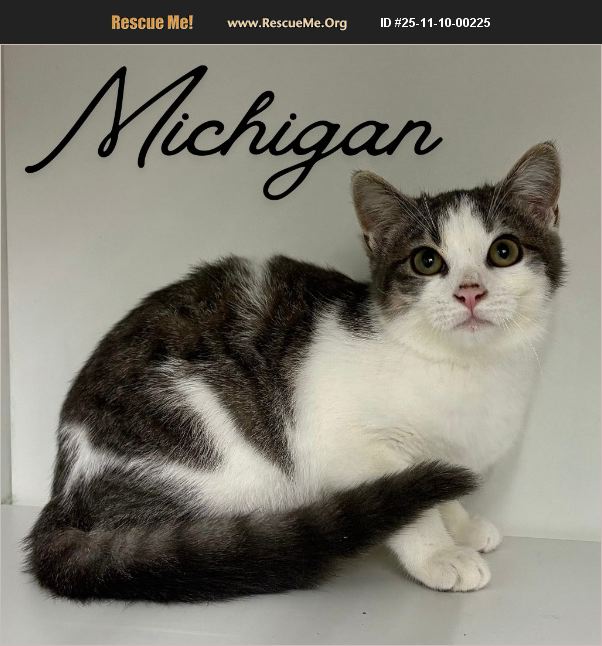 Meet Michigan! Michigan is a 3-month-old sweetheart with a curious spirit and a playful heart! He loves to explore, chase toys, and show off his kitten zoomies. When playtime's over, he's all about snuggles and will happily curl up for a cozy nap by your side. Friendly, affectionate, and full of charm, Michigan is ready to bring warmth and joy to his forever home. Whether you're looking for a playful companion or a cuddle buddy, this little guy is the whole package! Adopt Michigan and let him fill your home with purrs and love.