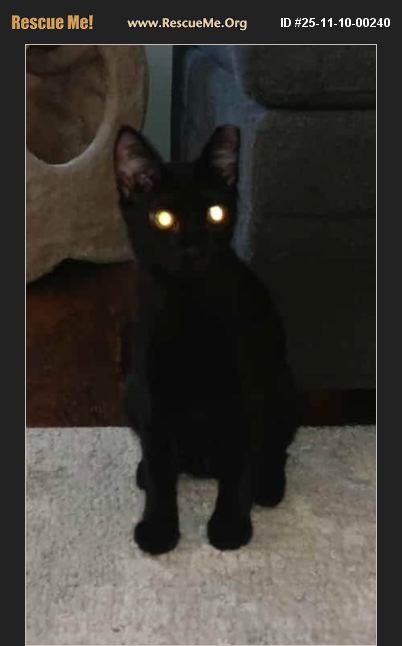 6 months old longer haired, solid black with beautiful green eyes. She was from a stray cat, became friendly from our TNR so she is living inside while we find her a home. The mother was 1/2 Himalayan